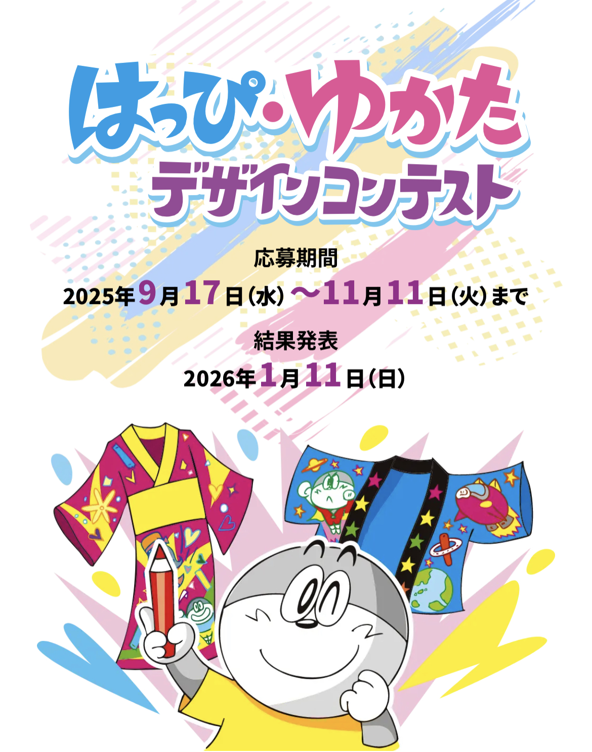 こちらは、はっぴやゆかたのデザインに色を塗るという誰でも気軽に応募できるコンテストです。みんな大好きなお菓子・うまい棒のキャンペーンである「うまい棒まつり」の一環となります。やおきん賞に選ばれると、自分でデザインしたはっぴやゆかたがもらえちゃうチャンス!