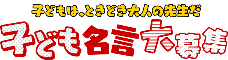 子育て中にわが子が発した言葉にハッとさせられた人も多いはず。今回は、そんな子ども名言を募集します。孫、親戚の子ども、兄弟姉妹など、自分の子ども以外の発言を応募しても問題ありません。大人たちがつい忘れてしまった感情を呼び起こしてくれる名言を、ぜひ応募してみてください。