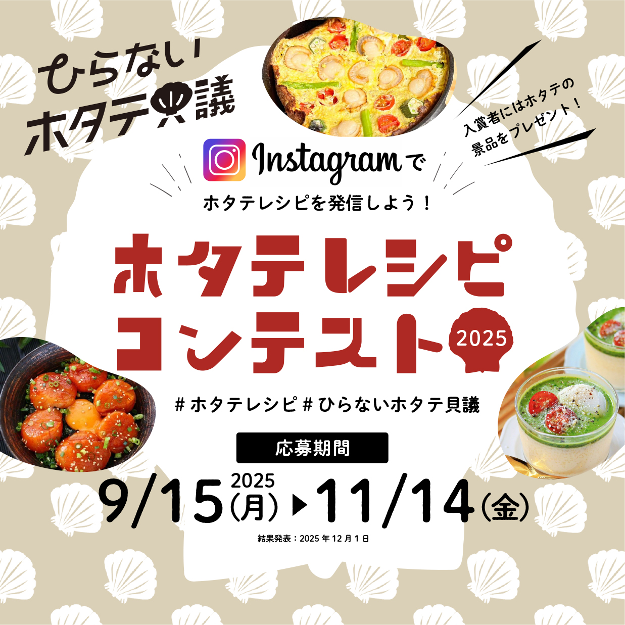 青森県の平内町はホタテの名産地。より多くの人においしいホタテ料理を食べてもらい、ホタテの魅力を知ってもらおう、という思いからレシピコンテストが開催されます。今回のテーマは「秋の味覚×ホタテ」。最優秀ホタテ賞には冷凍ホタテ貝柱5kg、優秀賞2点には3kg、ホタテ賞2点には1kgが贈られます。ほっぺたが落ちる濃厚なホタテを堪能したい!