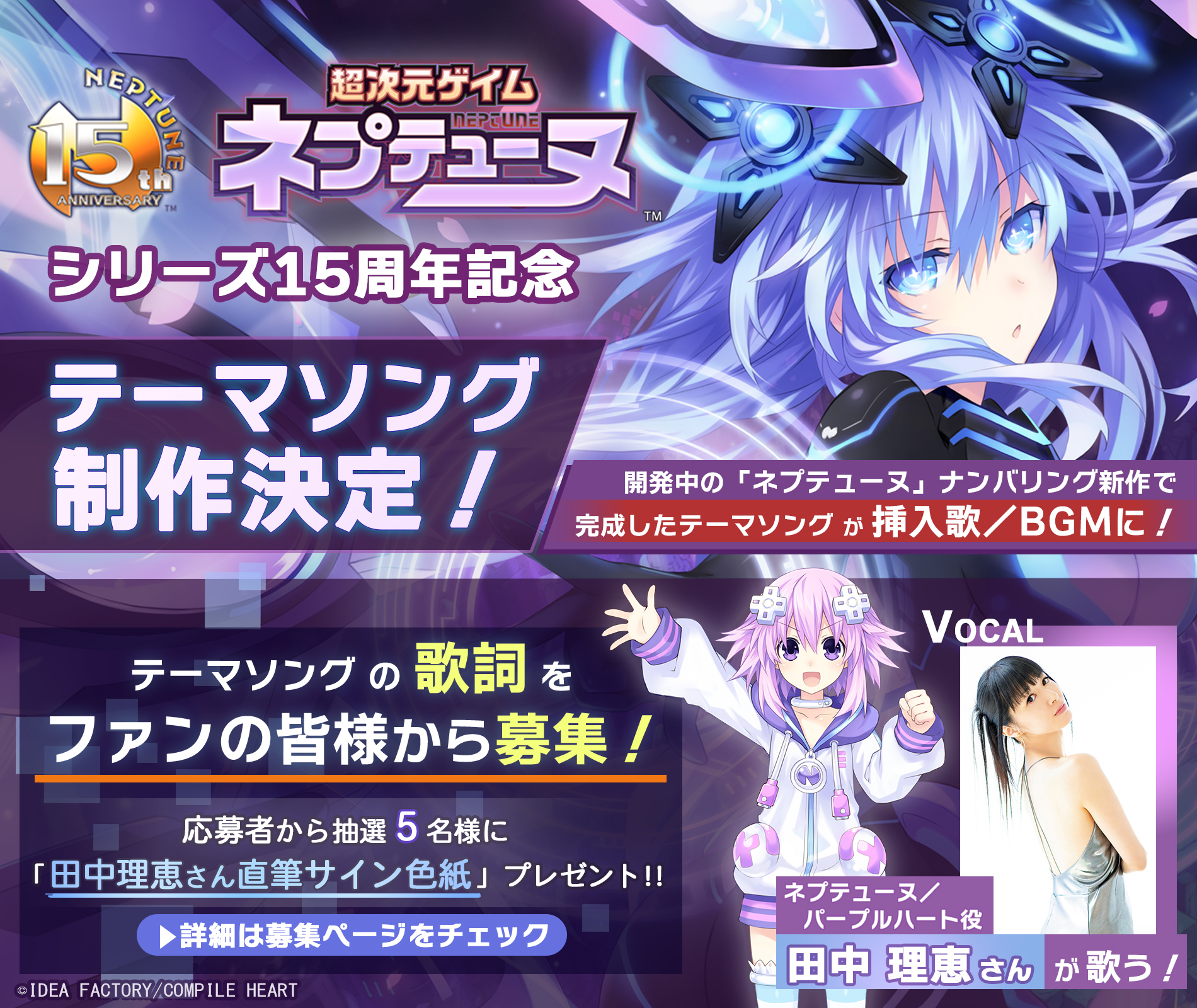 「ネプテューヌ」シリーズ15周年記念テーマソング制作決定!歌詞を大募集!