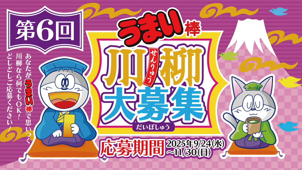 このコンテストの目玉はなんといっても、優秀賞5名に贈られる、うまい棒11年分! 最優秀賞の温泉旅館宿泊券などを逃しても、もはやありがとうと言いたいくらいのインパクトがある副賞です。応募できる作品数に上限はないので、ありったけのうまい棒ネタを、いろいろな角度から表現してみましょう。きっと誰もが一度は食べたことがあるであろうお菓子。今宵はうまい棒を味わいながら、川柳を考えてみるのはいかが。