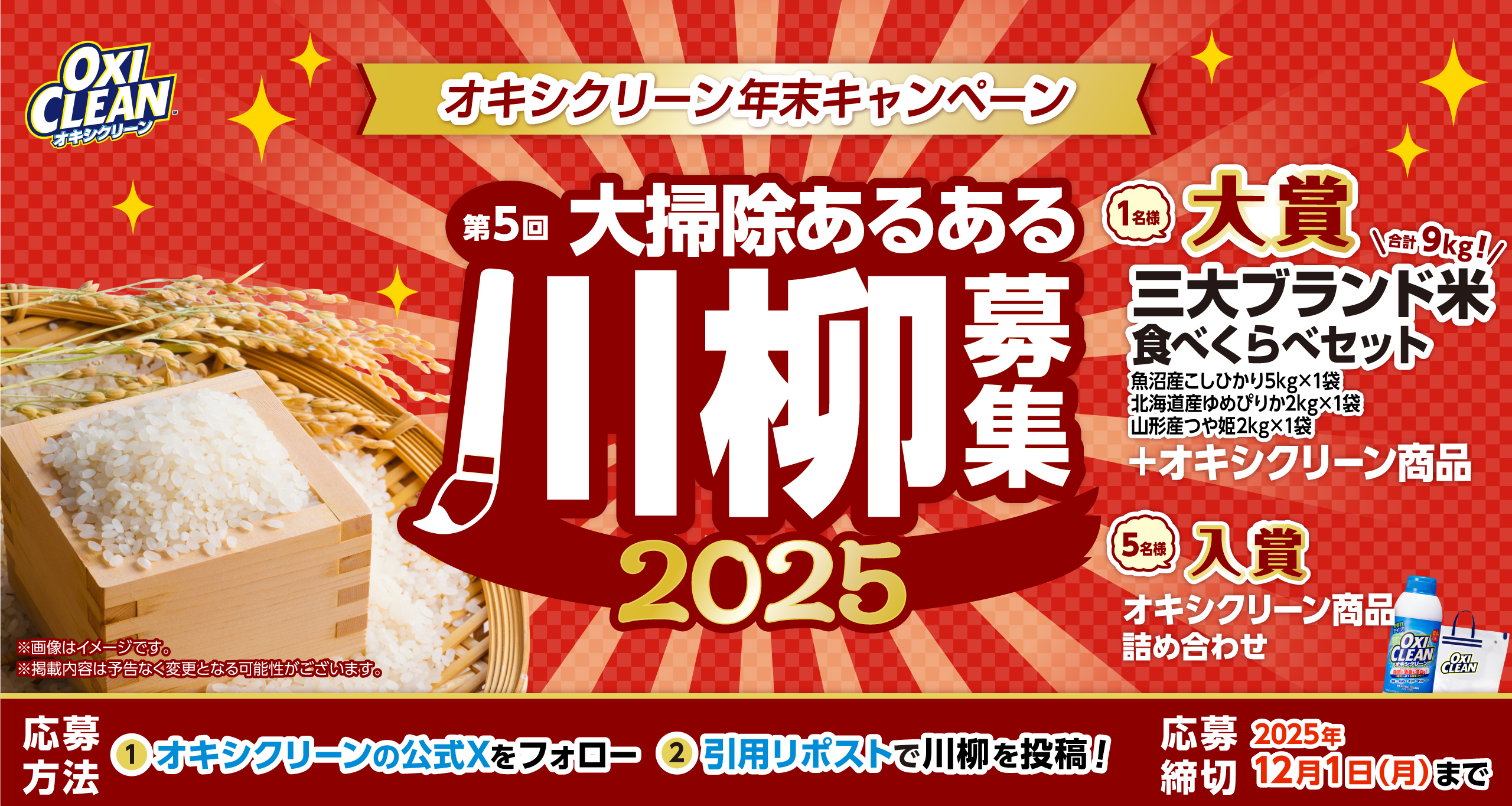 もうすぐ12月。そろそろ年末の大掃除に取り掛かる人も多いのでは? オキシクリーンで有名な株式会社グラフィコが、大掃除あるあるを込めた川柳を募集中です。応募方法は、オキシクリーンの公式Xをフォローして、引用リポストで川柳を投稿。三大ブランド米食べくらべセット合計9kg分とオキシクリーン商品をゲットしよう!