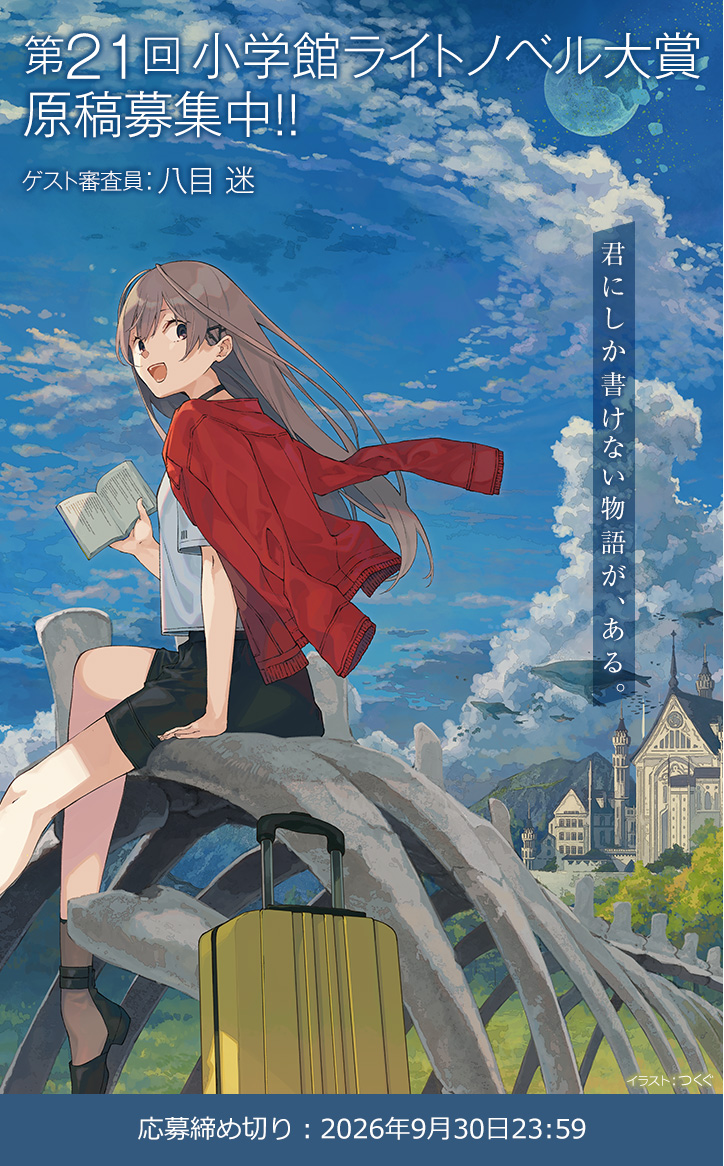 小学館がライトノベルを大募集! ビジュアルが付くことを意識した、エンターテインメント小説であれば、ファンタジー、ミステリー、恋愛、SFなどジャンルは不問です。大賞は賞金200万円&デビュー確約。ガガガ賞や優秀賞も賞金&デビュー確約なので、プロを目指す人にはうってつけの公募です。一次審査通過者全員に、評価シート&寸評を送ってくれるのもうれしいポイント。