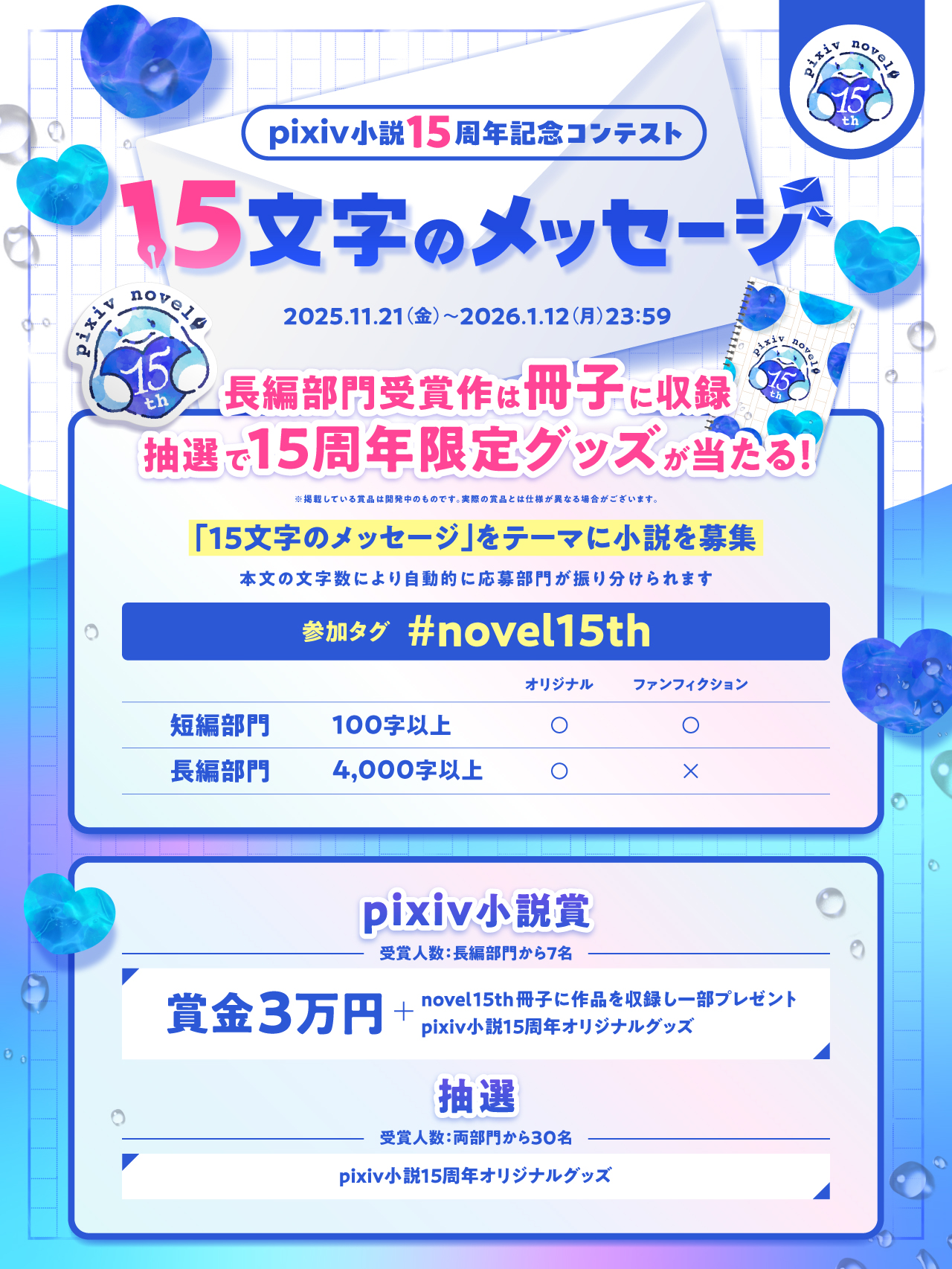 pixiv小説15周年記念コンテスト「15文字のメッセージ」