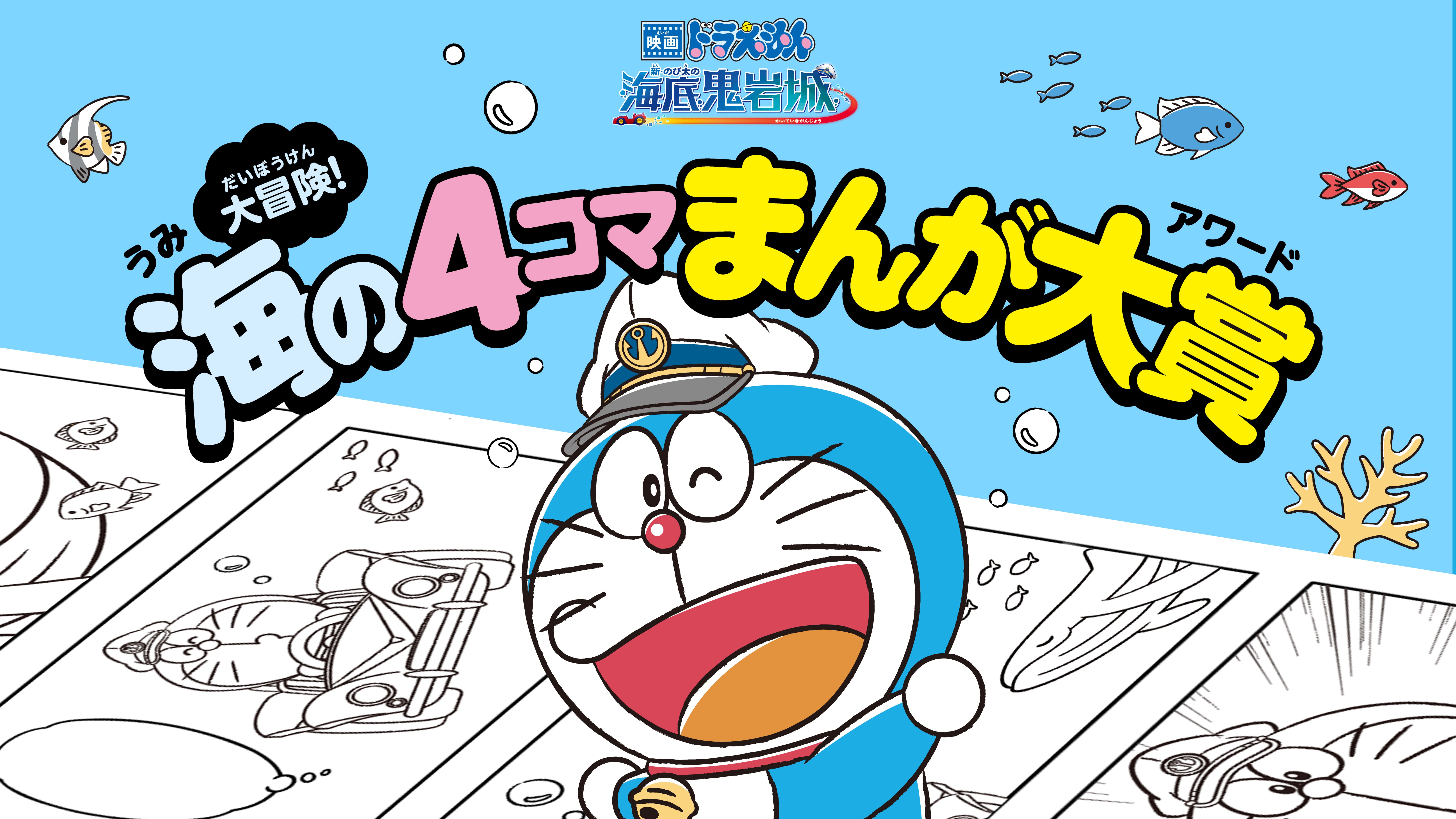 2026年2月から放映される『映画ドラえもん 新・のび太の海底鬼岩城』の公開を記念したマンガのコンテスト! 「ドラえもん×海の世界」をテーマに、4コママンガを募集しています。見事、最優秀賞に輝いた方は、公式YouTubeチャンネルでボイスコミック化! ドラえもんたちが声に出して自分の作品を読んでくれるので、子どもから大人まで、ドラえもんが好きな方はこのチャンスをお見逃しなく。