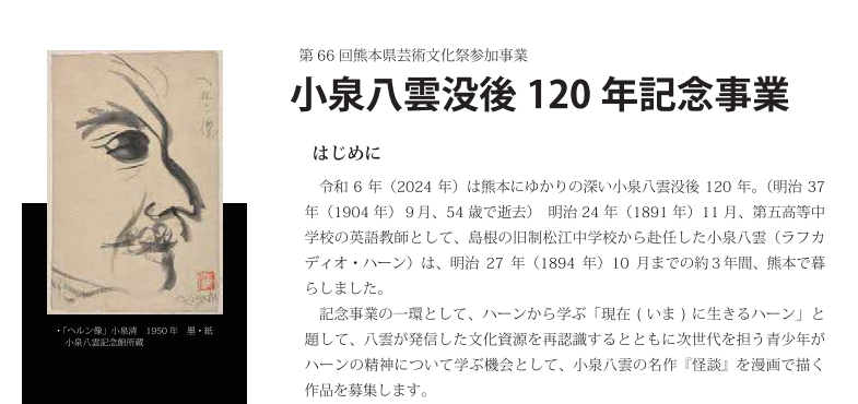 小泉八雲没後120周年記念事業《新作怪談》大募集