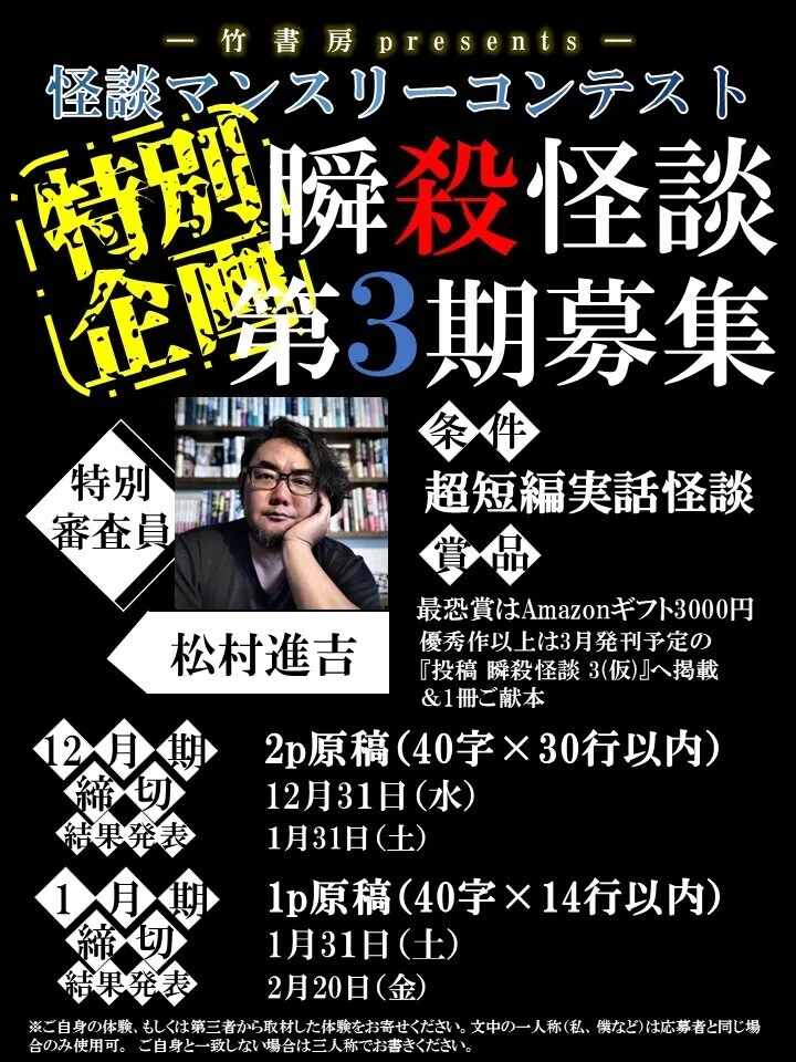 怪談マンスリーコンテスト特別企画 瞬殺怪談 第3期募集