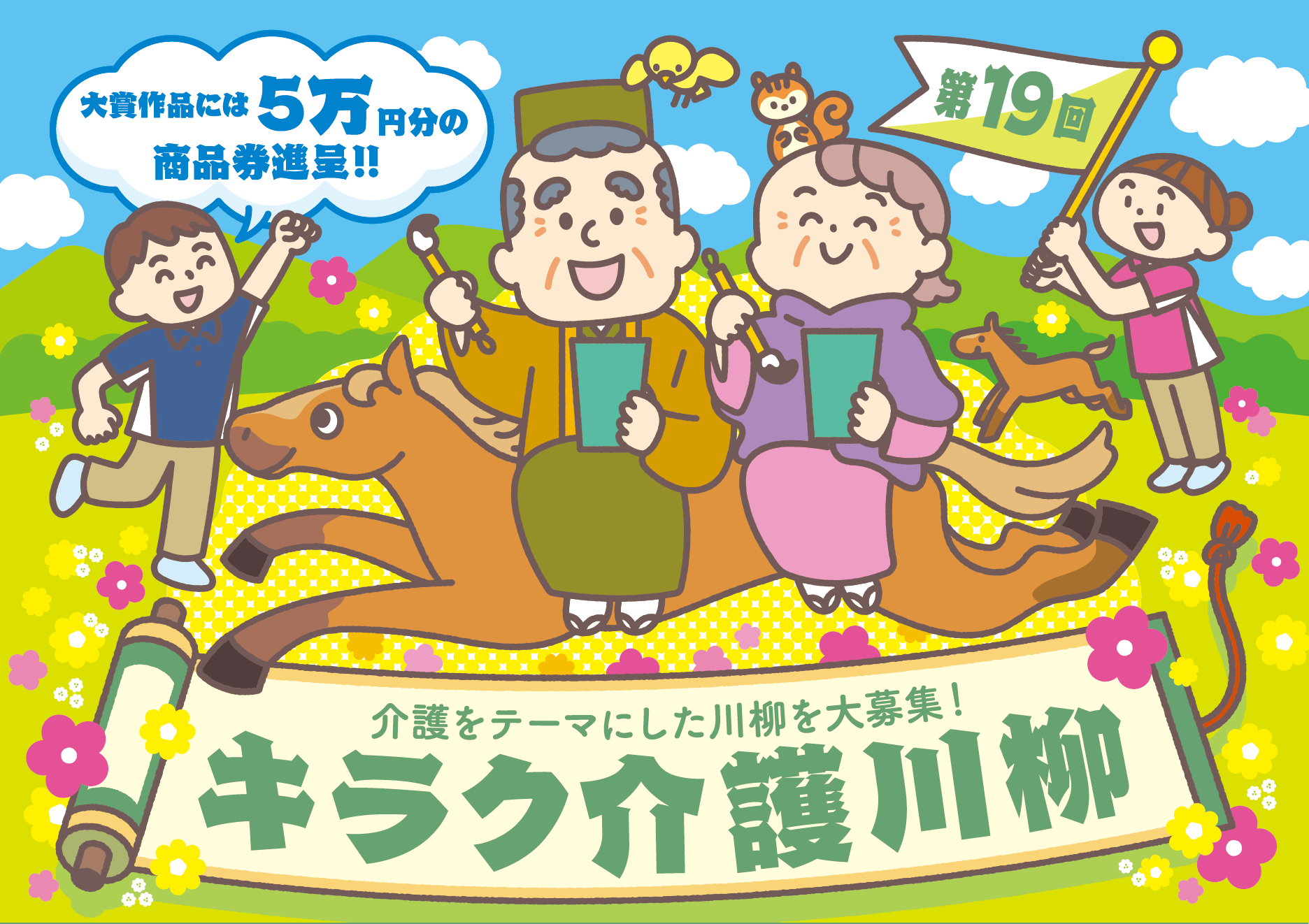 この公募で募集するのは、ズバリ「介護」について書いた川柳です。大切な人を介護していく中で感じた思いやエピソードなどをもとにして、心あたたまる川柳を応募してみましょう。ちなみに募集開始は3月1日からなので、今はじっくりとアイデアを練っておきたいですね。