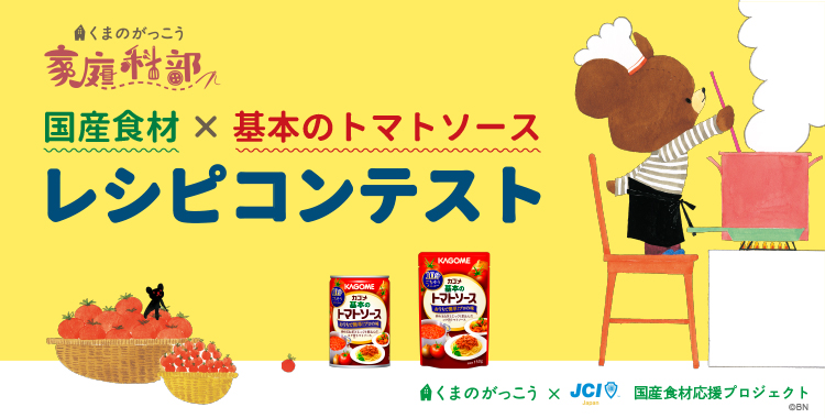 絵本「くまのがっこう」の主人公・ジャッキーのように「手づくり」が大好きな人々のための無料コミュニティサイト「くまのがっこう家庭科部」でレシピコンテストが開催中です。国産食材1点以上と「カゴメ基本のトマトソース」を使ったお料理ならなんでも応募OK。新生活で春からお料理を始めたという人でも、カゴメのソースを使ったお手軽レシピなら挑戦できちゃうかも!?