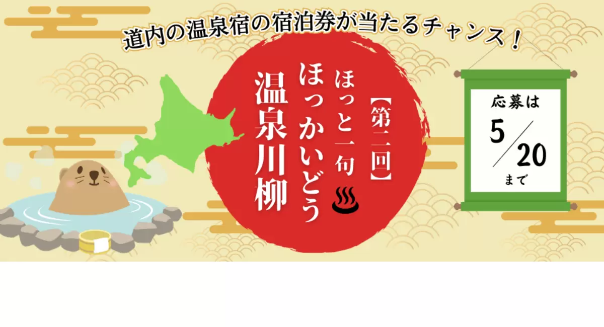 北海道に特化した宿泊予約サイト「ぐうたび北海道」が、道内温泉地をテーマとした川柳コンテストを開催中です。温泉旅行の思い出や温泉マナーについてなど、温泉にまつわることなら題材はなんでもOK。前回の受賞作は「登別」や「蝦夷富士」「ミリオーネ」といった地名などが入った句が多数入賞していましたよ。北海道の温泉での出来事を思い出しながら、「笑い」や「涙」を込めた句を詠んでみてくださいね。