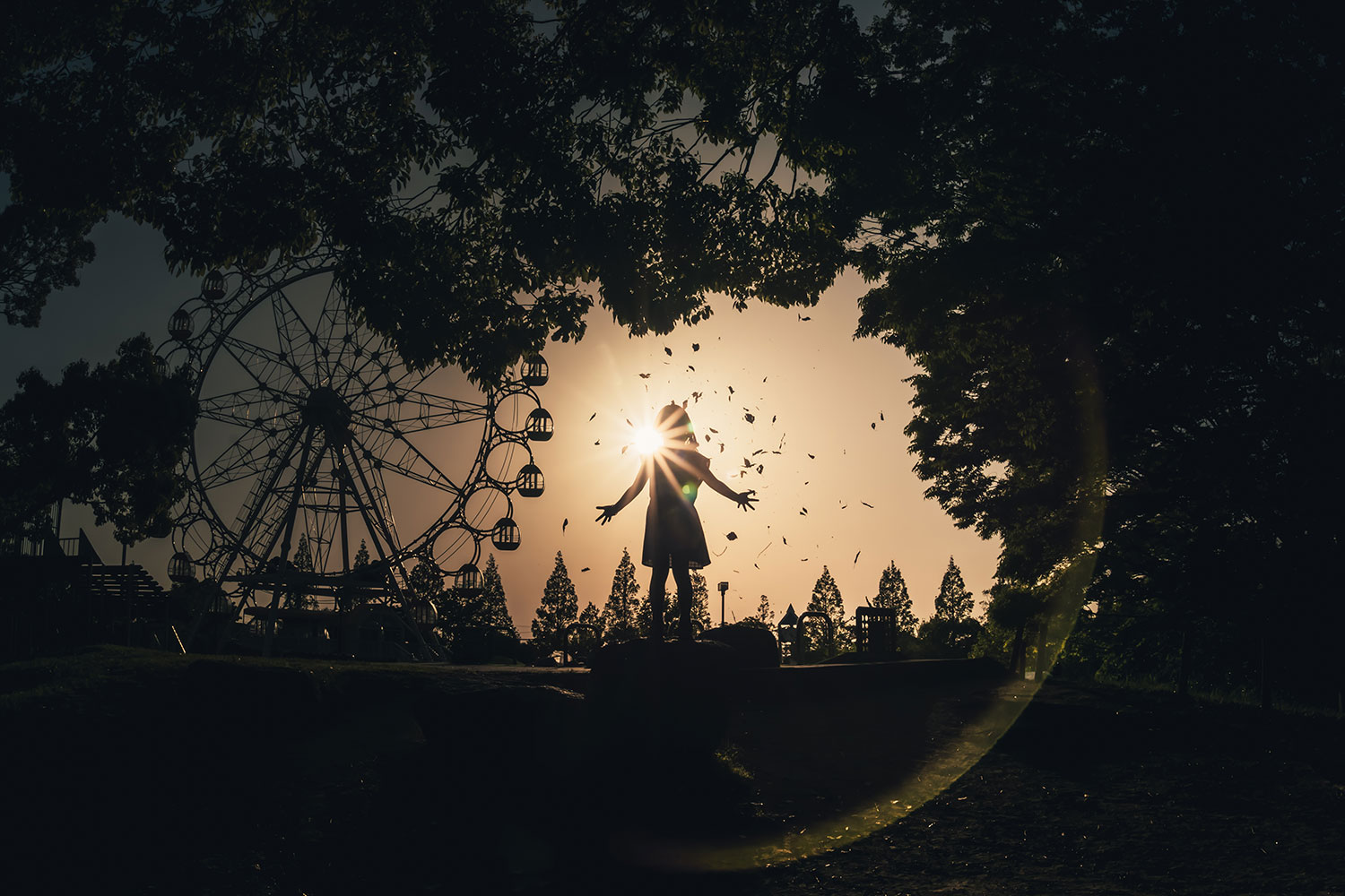 熊切さん:頭一つ抜けようと思うと、いくつかの条件が必要だと思います。カメラの特性を生かして「光と影」を上手く使っている。モチーフが際立つような「アングルと構図」が考えられている。また、「森の遊園地」で言うなら、雲や太陽の位置、女の子が投げた葉の形などを見てわかるように、何度も撮影して「最高の瞬間」を捉えているのがお見事です。逆光により絵本や影絵のような美しい世界観を生み出す演出もいいですね。観る人にストーリーを与え、想像力をかきたてます。1枚の中に様々な魅力が詰まっていることが大切だと思います。