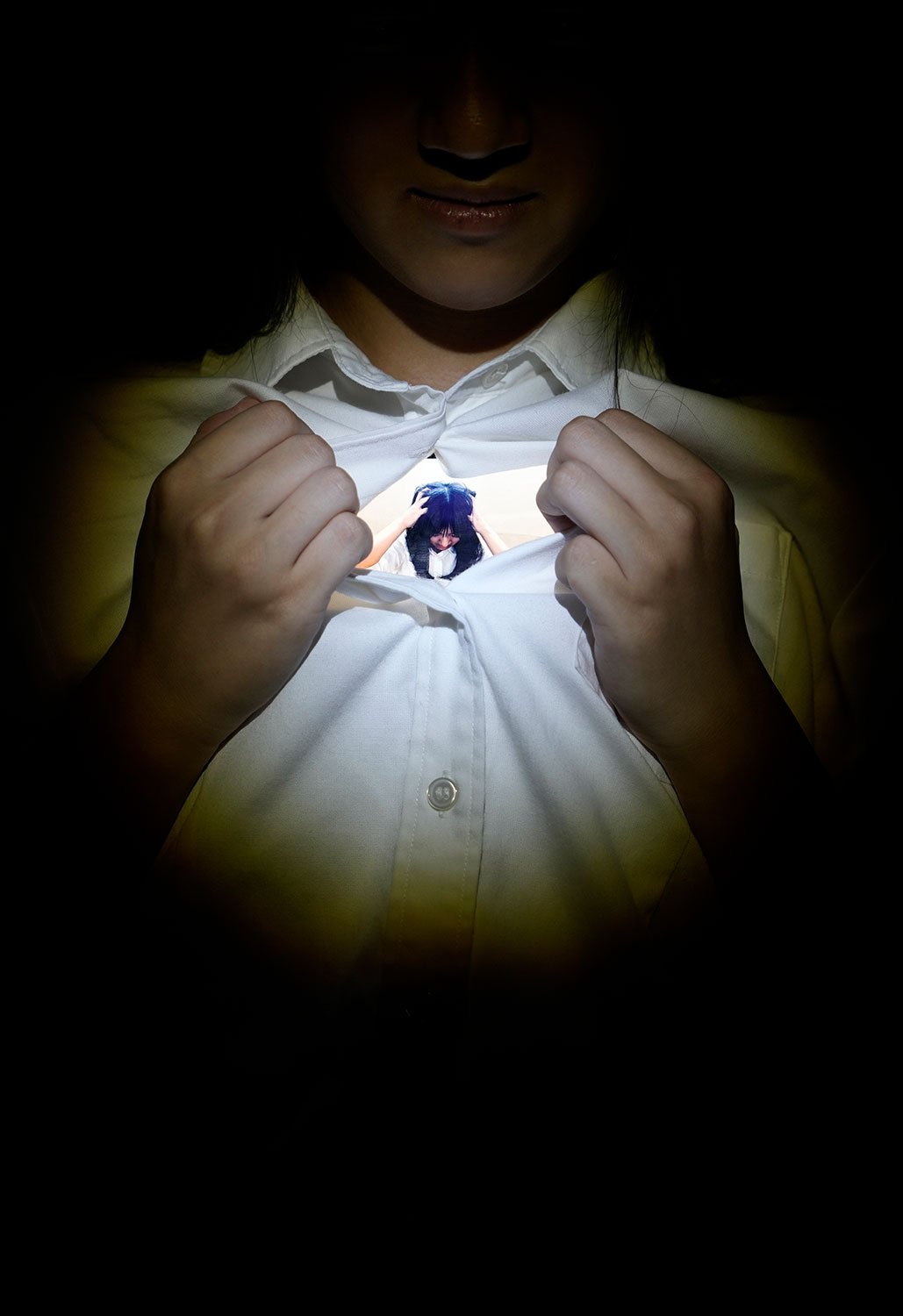 熊切さん:これは、本当に大人が発想しない自由なアイデアですね。そして、観る人の目がこの女の子の胸の部分に集中するように、手以外を暗くしている表現がいい。テーマが際立っていると思います。U-18部門・佳作の「気魄の一撃」は剣道の面の中から見た相手を撮っているのが面白いし、同じく佳作の「風に吹かれて」ではサックスを空に掲げた様子に躍動感があり、いずれも切り口や視点がとても良いです。特別な場所に行かなくても、身の周りの場所や友達をどう面白く演出できるかがポイントかなと思います。