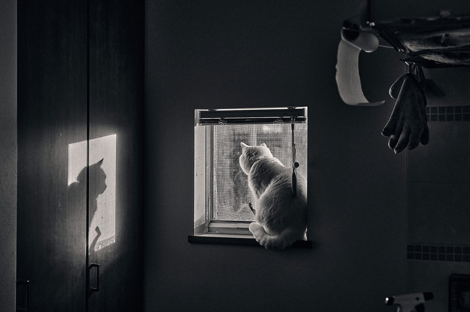 熊切さん:例えば、被写体をアップにしてただ撮るだけでは感動は伝わりにくい。花がきれいだなとか、昆虫がいきいきしているな、で終わってしまう。自由部門・佳作の「興味」も、猫が窓から外を見ているだけではなく、左側の壁に猫の影が映り、右側にちょっとしたゴム手袋があることで、「向こうに仲間がいて遊びたいのかな?」「外に出たいけれど出られないのかな?」と観る人に想像させる。構図を工夫し、情報を足し算することで広がりが生まれています。空間に意味を乗せることでストーリーが生まれるのです。