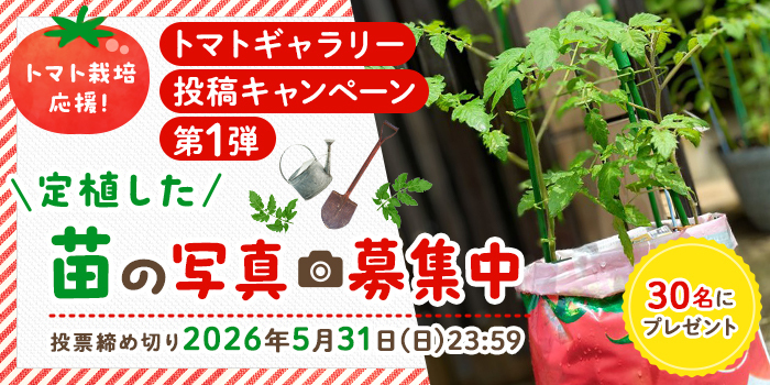 家庭菜園、していますか? トマトの苗をプランターや畑に植え付けた、記念すべき場面の写真を募集しています。カゴメの公式WEB「みんなで作るトマトギャラリー2026」から応募しましょう。抽選で30人にカゴメ商品詰め合わせが贈られます。サイトでは全国から寄せられたトマト栽培の様子が見られるので、参考にしたり、励みにしたり、仲間ができた気持ちになれそうです。