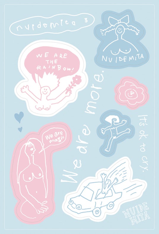 「nuidemita - 脱いでみた。3 」写真集内にも一部掲載しているイラスト6点を型抜きタイプのシールにした、オリジナルのステッカーシートです。
