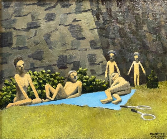 吉村宗浩 (神戸元町歩歩琳堂画廊[717]より出展) は、1980年代より地道に作家活動を続けながら、真摯に絵画と向き合ってきた孤高の画家です。作品からは私たちの生活に潜む滑稽さや不条理さが垣間見えます。今年は釜山のGallery Wooでの個展開催や、アートセントラル香港への出展などがあり、海外でも注目を集めています。