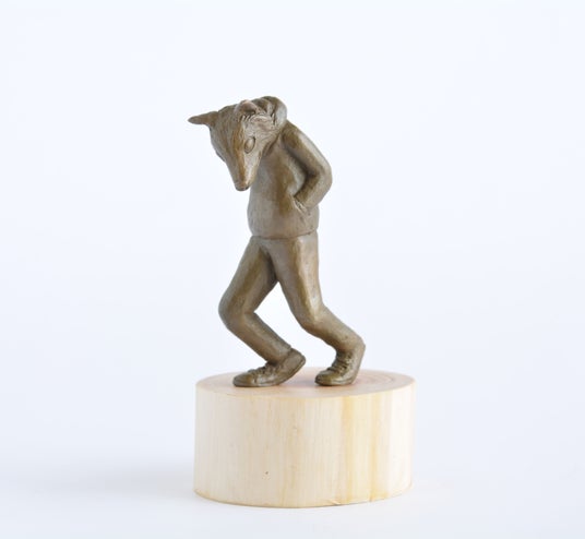 岩本依留羽「相反するヒト ミニ ~ 吽 ~」 石膏埋没鋳造法・ブロンズ・木、h14.5×w8×d7cm、2024年