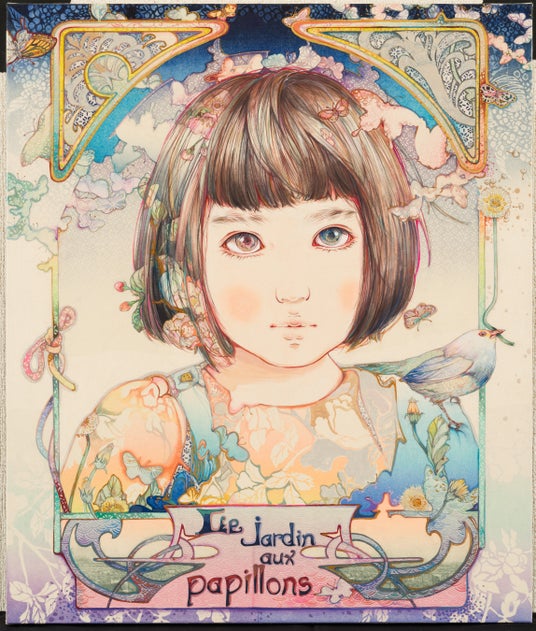 入江明日香 「Le jardin aux papillons(和訳:蝶の庭)」ミクストメディア、53×45cm、2024年