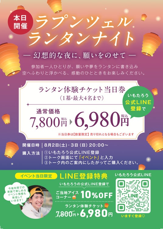 ランタン体験チケットが【当日7800円 → 6980円】に割引されるクーポンや、ご当地アイスが【10%OFF】になる限定クーポンを配信
