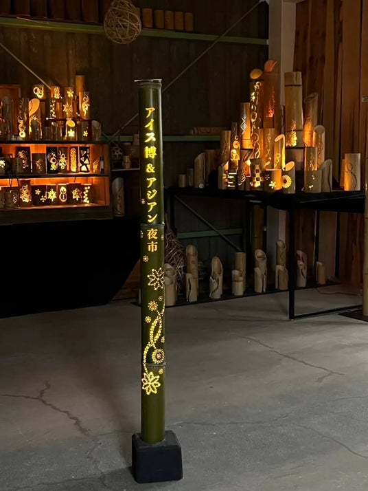 今回のイベントでは入口の目立つ場所に来場者をやさしく照らす「竹灯籠の演出」を実施予定。