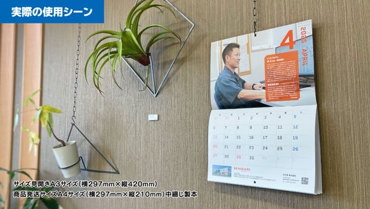 カレンダーは2025年4月から1年間の12ヶ月分に加えて、今回のカレンダーでは2026年4月分のボーナスページを含む13カ月仕様となっております。