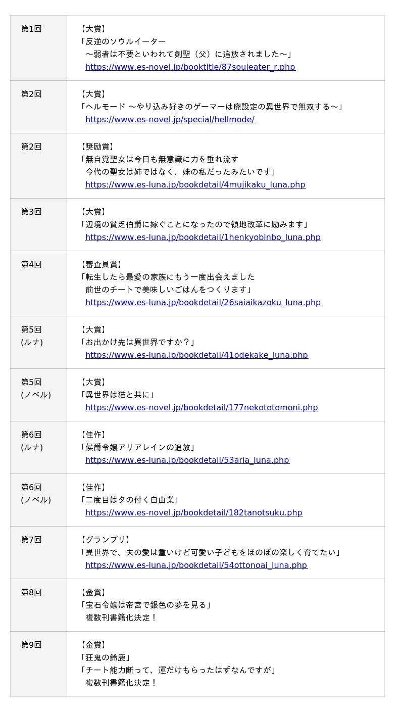 詳細は特設サイト( https://earthstar-novel.com/esn-award/aw-10/ )をご覧ください。過去受賞作品のご紹介