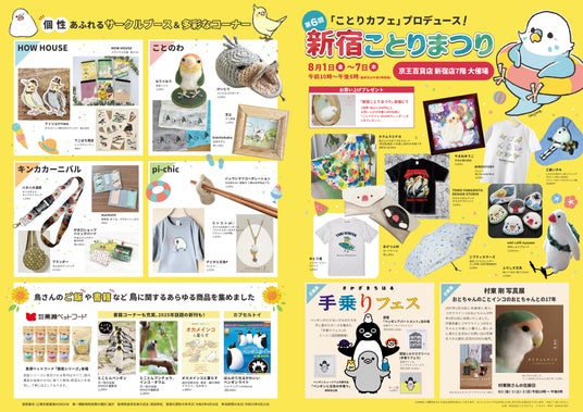 「小鳥たちを眺めながら、まったりコーヒータイム♪」をコンセプトにした「ことりカフェ上野本店」(http://kotoricafe.jp/)を運営する、株式会社ことりカフェ(本社:東京都台東区 代表取締役 川部志穂)は、京王百貨店新宿店(東京都新宿区西新宿1-1-4)7階大催場にて、夏休み恒例の第6回「新宿ことりまつり」を開催。
