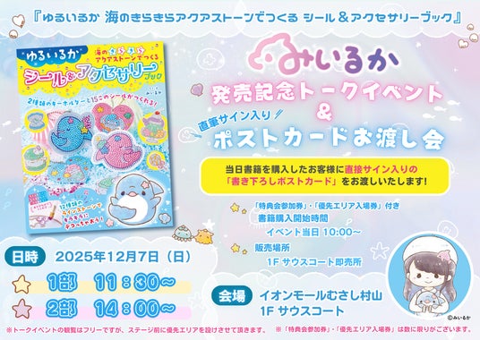 『ゆるいるか 海のきらきらアクアストーンでつくる シール&アクセサリーブック』が12月11日(木)発売!発売記念イベントを12月7日(日)に「イオンモールむさし村山」にて実施いたします。