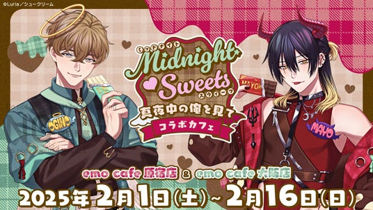 2025年2月1日(土)からは、「まひる」がクロス新宿ビジョンにて宣伝を行ったemo cafe原宿店・大阪店にて『真夜中の俺を見て』初のコラボカフェ「真夜中の俺を見てコラボカフェ~Midnight Sweets~」を同時開催いたします。