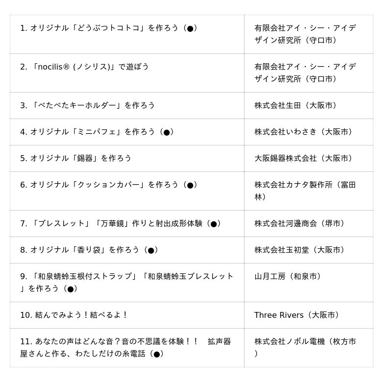 今回も、大阪製ブランド認定企業10社によるものづくりの魅力を体感できる内容となっています。