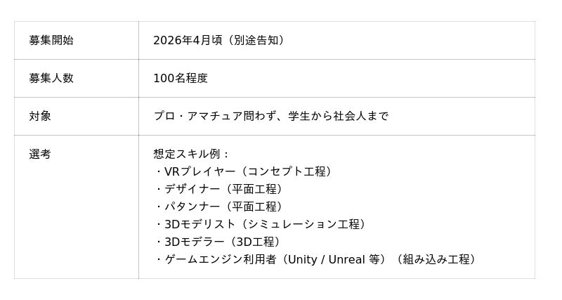 - 協賛・協力企業を募集:ロゴ掲出等の露出に加え、制作プロセス・事例へのアクセス機会を提供予定。