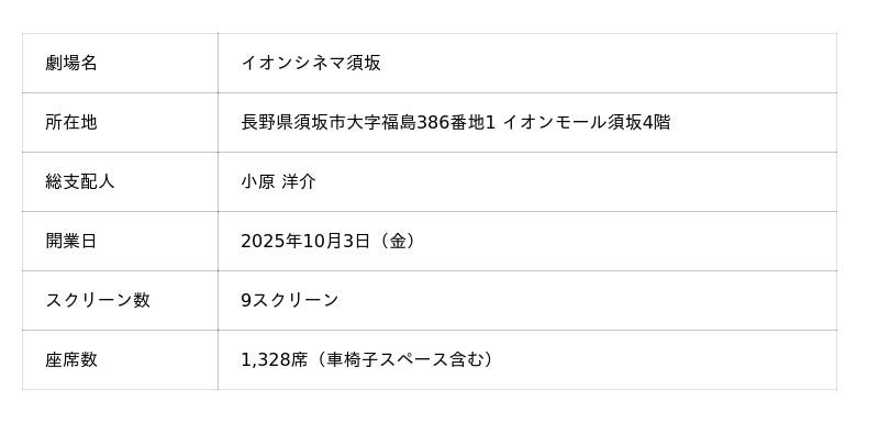 「イオンシネマ須坂」2025年10月3日(金)開業