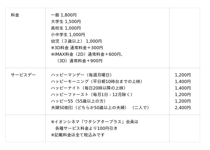 ■ワタシアタープラス会員サービス、イオンカード割引などおトクに映画を楽しもう