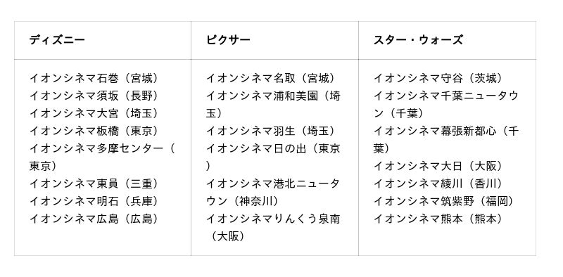 「ディズニー特大オリジナルアート シーニック」導入済劇場一覧
