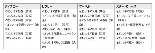 今回各劇場に導入されるデザインは、ディズニーの豊かなストーリーテリングを象徴する4つのブランド「ディズニー」、「ピクサー」、「マーベル」、「スター・ウォーズ」の個性豊かなキャラクターが鮮やかに描かれる全4種類。全てのアートがイオンシネマ向けに新たにデザインされた限定アートとなり、国内のイオンシネマ該当劇場で特別にお楽しみいただけます。本日以降、全国24劇場のイオンシネマで順次導入いたします。