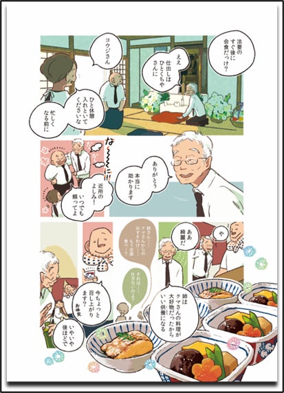 街の路地裏の料理店「ひとくちや」を舞台に、大将・クマさんのつくる温かな味と、そこにあつまる人たちの人情あふれるエピソードを、優しいタッチで描いたフルカラーの連作短編コミックシリーズ「ごはんのおとも」。心に沁みる物語に加え、各話には、「たまごの黄身のしょうゆ漬け」「しそみそとやきおむすび」「とりにくとたまごとじ」など、物語に登場する料理のレシピもイラスト入りで描かれ、感動とともに食欲が刺激されること必至な作品です。「仕事で疲れていたので、ひさしぶりに優しさに触れた気がします」「ひとりじゃないよ、と言ってそばにいてくれるような一冊」「フルカラーなので、匂いや食感も想像できて…ああ~食べたい!!」と数多くの読者から支持され、累計15万部を突破した人気シリーズとなっています。