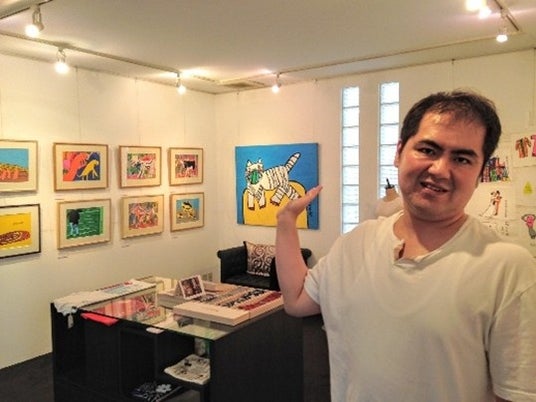 1981年生まれ、福岡県在住。工房まる所属。2歳で知的障がいを伴う自閉と診断される。11歳のときに絵と出会い、表現する楽しさに魅了される。15歳で初個展を開き、以来、家族のサポートによって、毎年全国で個展を重ね、鮮やかな色彩と自由な発想あふれる作風が、多くの人の心を惹きつけている。TBS系列、金曜ドラマ「ライオンの隠れ家」で、自閉スペクトラム症の青年(演・坂東龍汰さん)が描く絵として採用される。2025年1月、渋谷で展覧会を開催。