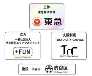本プロジェクトは、一般社団法人渋谷駅前エリアマネジメントとの共創、渋谷区からの後援を受けるなど、官民連携プロジェクトとして推進します。第1弾として渋谷スクランブルスクエア西棟新築工事の北側工事用仮囲いで2025年8月18日(月)に、アート作品が公開されました。