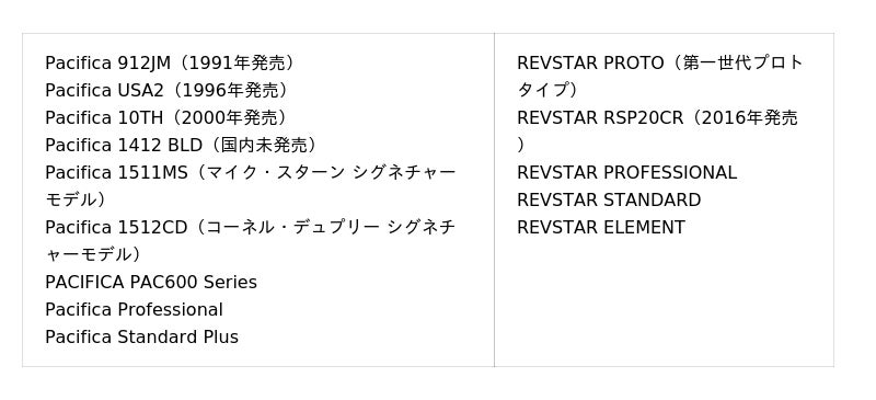 1.Pacifica & REVSTAR/HISTORY & TECHNOLOGY当社のエレキギター「Pacifica」「REVSTAR」の歴代モデルの代表的な製品を展示します。現行品においては、テクノロジーに焦点を当て、当社独自の設計プロセス「アコースティック・デザイン※」による「チェンバー構造」が確認できるカットモデルやパネル展示を通して、両シリーズの音づくりの背景・哲学を紹介します。