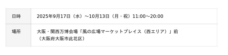 ヤマハ株式会社は、公益社団法人2025年日本国際博覧会協会(以下、日本国際博覧会協会)に協賛し、株式会社ヤマハミュージックジャパンと協働で、9月17日(水)から10月13日(月・祝)まで「2025年日本国際博覧会」(以下、大阪・関西万博)会場「風の広場マーケットプレイス(西エリア)」前に、誰でも自由に演奏できるストリートピアノを設置する「音でつなぐEXPO2025~Uniting the EXPO in Harmony」を実施します。