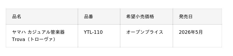 ヤマハ株式会社(以下、当社)は、カジュアル管楽器の新製品として、『Trova(トローヴァ)』を2026年5月に発売します。