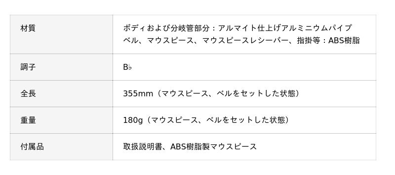 1.「分岐管構造」による本格的なトランペットの音色円筒管を分岐させた「分岐管構造」を採用することで、円筒形の管体でありながら、トランペットのような広がりのある豊かな音色を実現しました。2本の分岐管により、トランペットの自然倍音列が演奏できます。また、円筒管により管体を巻くことが可能となり、コンパクトなボディサイズを実現。楽器を構えた際の重心が演奏者に近いため、楽器を安定して持つことができます。