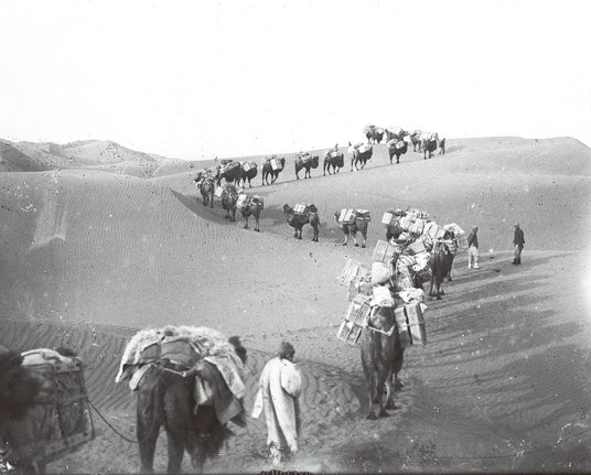 沙漠地帯を横断するラクダ隊 大正3年(1914) 原資料:ガラス乾板 龍谷大学図書館