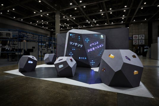 コンセプト: 自社出展ブースとして、あえて「建設途中」のような未完成な姿を見せ、見る者の想像力を喚起する空間。