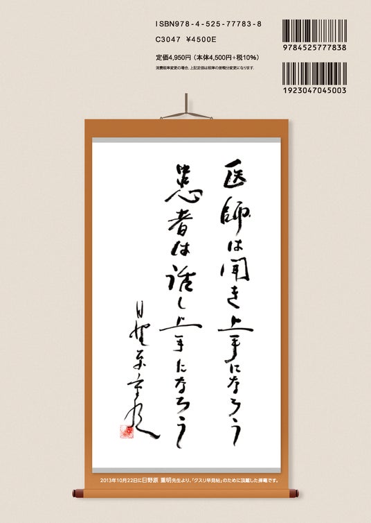 故・日野原 重明 先生の揮毫「医師は聞き上手になろう 患者は話し上手になろう」