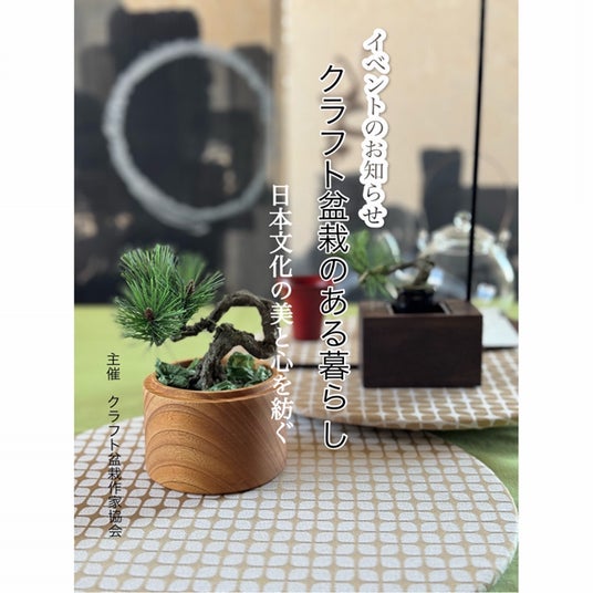日本クラフト盆栽作家協会が主催する「クラフト盆栽のある暮らし」イベント。クラフト盆栽の作品展示やテーブルコーディネートに加え、様々なwaアイテム(和小物)がラインナップします。