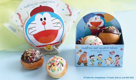 「クリームドーナツ&ドーナツポップ」『映画ドラえもん のび太の絵世界物語』をイメージしたドーナツです。カスタードクリーム入りのドーナツと、小さく丸めてデコレーションしたドーナツポップの2種類。揚げずにオーブンで焼いて作ります。オリジナルのスペシャルパッケージに入れてお持ち帰りします。先着順なのでお早めに!