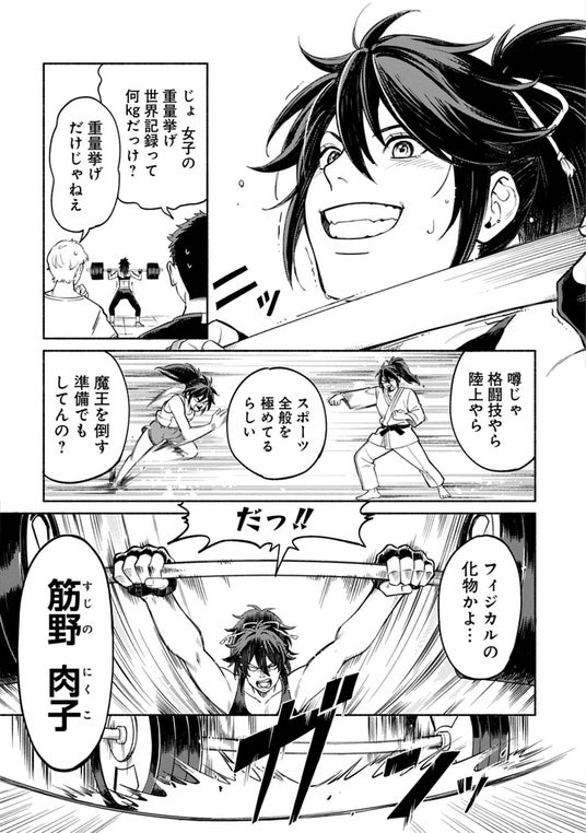 フィジカルの化物・筋野肉子(すじのにくこ)が戦国時代にタイムスリップ!