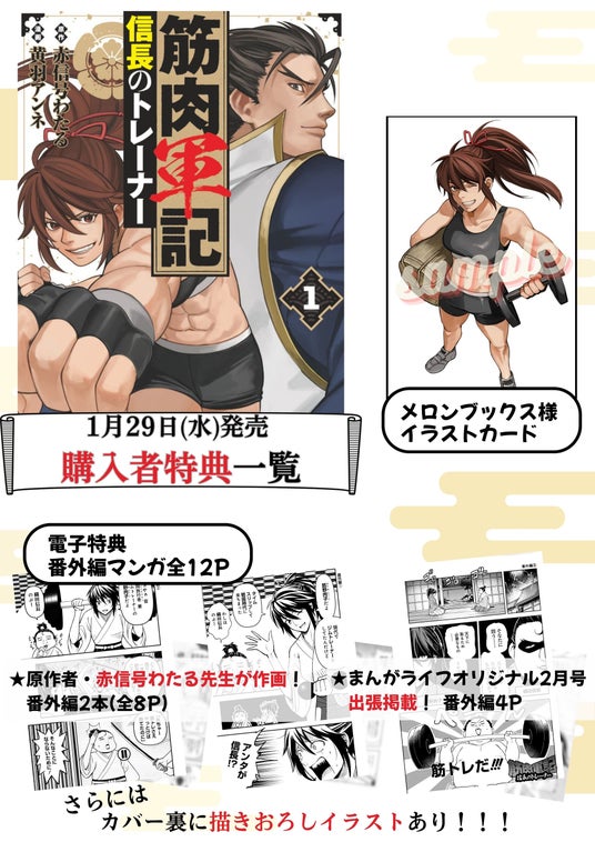株式会社竹書房(所在地:東京都千代田区、代表取締役社長:宮田 純孝)は、「WEBコミックガンマぷらす」で連載中の『筋肉軍記 信長のトレーナー』第1巻(原作:赤信号わたる 漫画:黄羽アンネ)を2025年1月29日(水)に発売いたしました。