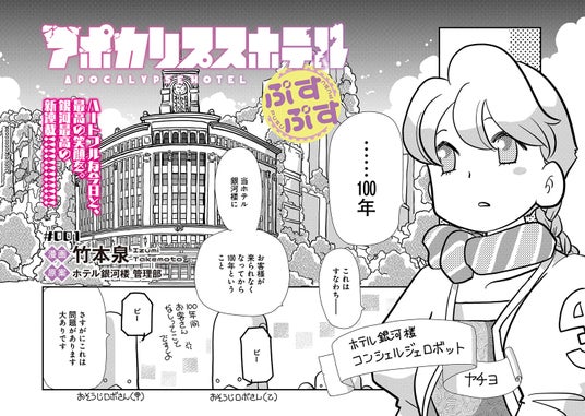 株式会社竹書房(所在地:東京都千代田区 代表取締役社長:宮田 純孝)は、TVアニメーション「アポカリプスホテル」のコミカライズ『アポカリプスホテルぷすぷす』(著者:竹本泉)を2025年7月7日(月)に発売いたします。